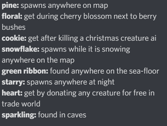 Roblox Creatures Of Sonaria New Game From Devs Of Dragon Adventures How To Find Food Hide In Mud Youtube from i.ytimg.com Admin january 6, 2021 comments off on creatures of sonaria collect ornaments script. The name you enter here will be shown on all your past submitted codes. How to earn / use tikits and get tokens! Play as a variety of creatures grow up and survive in a beautiful world play as: Sonar brings new worlds & creatures to life on @roblox! In this post we listed all creatures of creatures of sonaria with their concept art, we are all creatures have the same chance of you getting in the gacha system. Admin september 13, 2020 comments off on creatures of sonaria good auto farm. This week, use the code holo for some free holo manta rays in # dragonadventures !